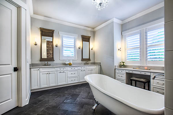 To achieve an organic and zen-like feeling, use natural materials such as wood, stone, and ceramic. Wood is a popular choice for vanities and cabinets, while stones like marble or granite are better suited for vanity tops, backsplashes, and flooring. Of course, ceramic is ideal for all your bathroom tiling needs.